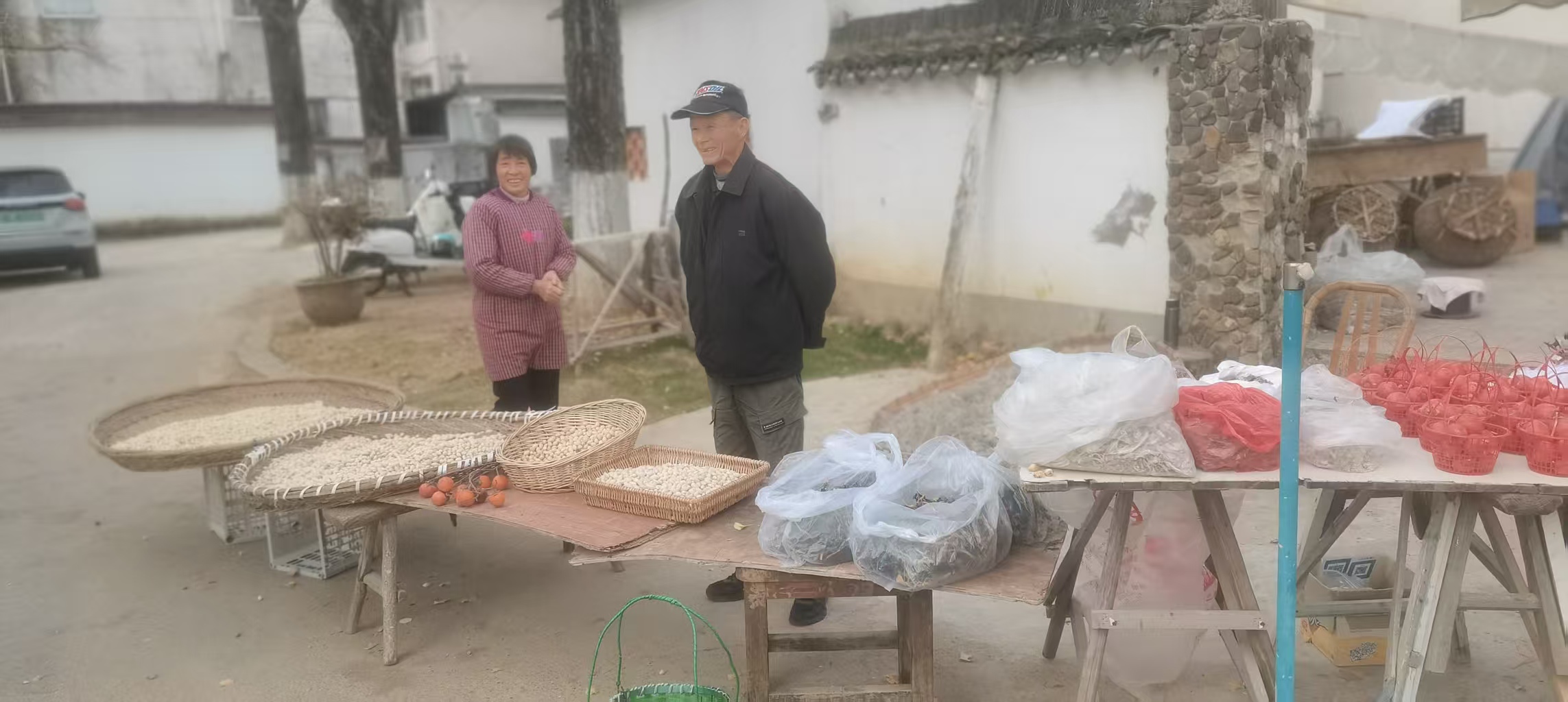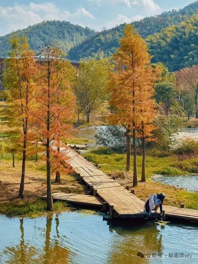 长廊深处,隐约着人家。白墙有些斑驳了,黑瓦上落着几片金叶,静静地偎着。炊烟是淡青色的,袅袅地升起来,在这金色的光影里,显得格外素净。这五个村落(方一村、方岩村、潘礼南村、大岕口村等)就散落在长廊沿线,形成“村在林中,林在村中”的独特格局。一位老妪坐在门前的石凳上,脚边摊晒着新采的银杏果,她也不看我,只眯着眼望她的树,那神情,仿佛不是她在看树,倒是树在看她,看了百年。我便想,这长廊的魂,怕不止在这炫目的景色里,更是在这人与树千百年来默然相守的日常里。树荫庇着人,人守护着树;春华秋实,生老病死,都在这份长久的注视里成了寻常。