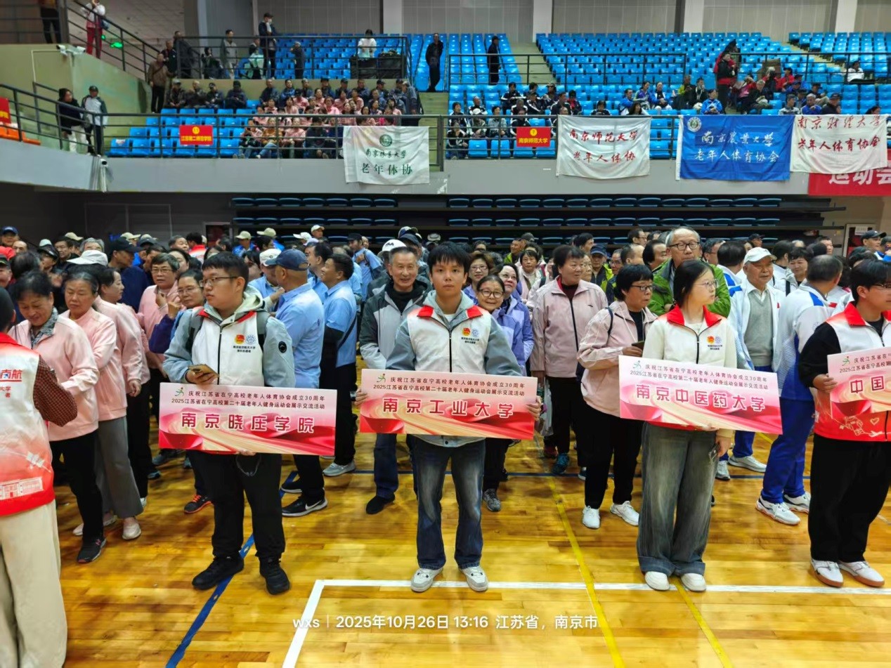 2025年江苏省在宁高校第二十届老年人健身运动会于10月26日在南京航空航天大学将军路校区体育馆举行。来自28所在宁高校的1800多名老年运动员、裁判员、志愿者及工作人员齐聚一堂,共同见证这一老年体育盛会的精彩华章。