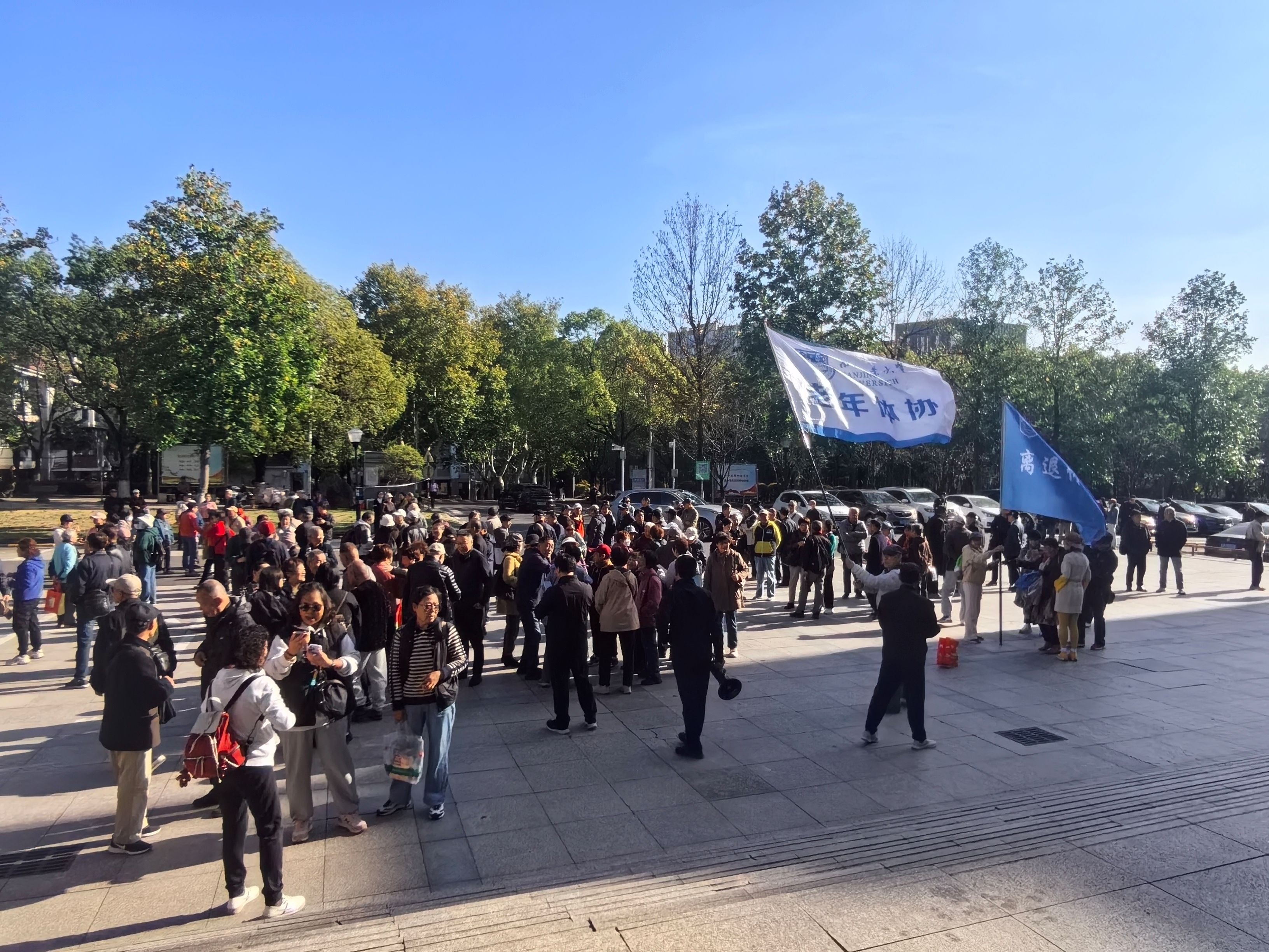11月11日,由离退休工作处主办、能源科学与工程学院协办的“漫步金秋·情暖浦园”2025离退休教职工校园健步走活动在江浦校区举行。副校长郭万牛出席开幕式。开幕式由离退休工作处处长邢海东主持。