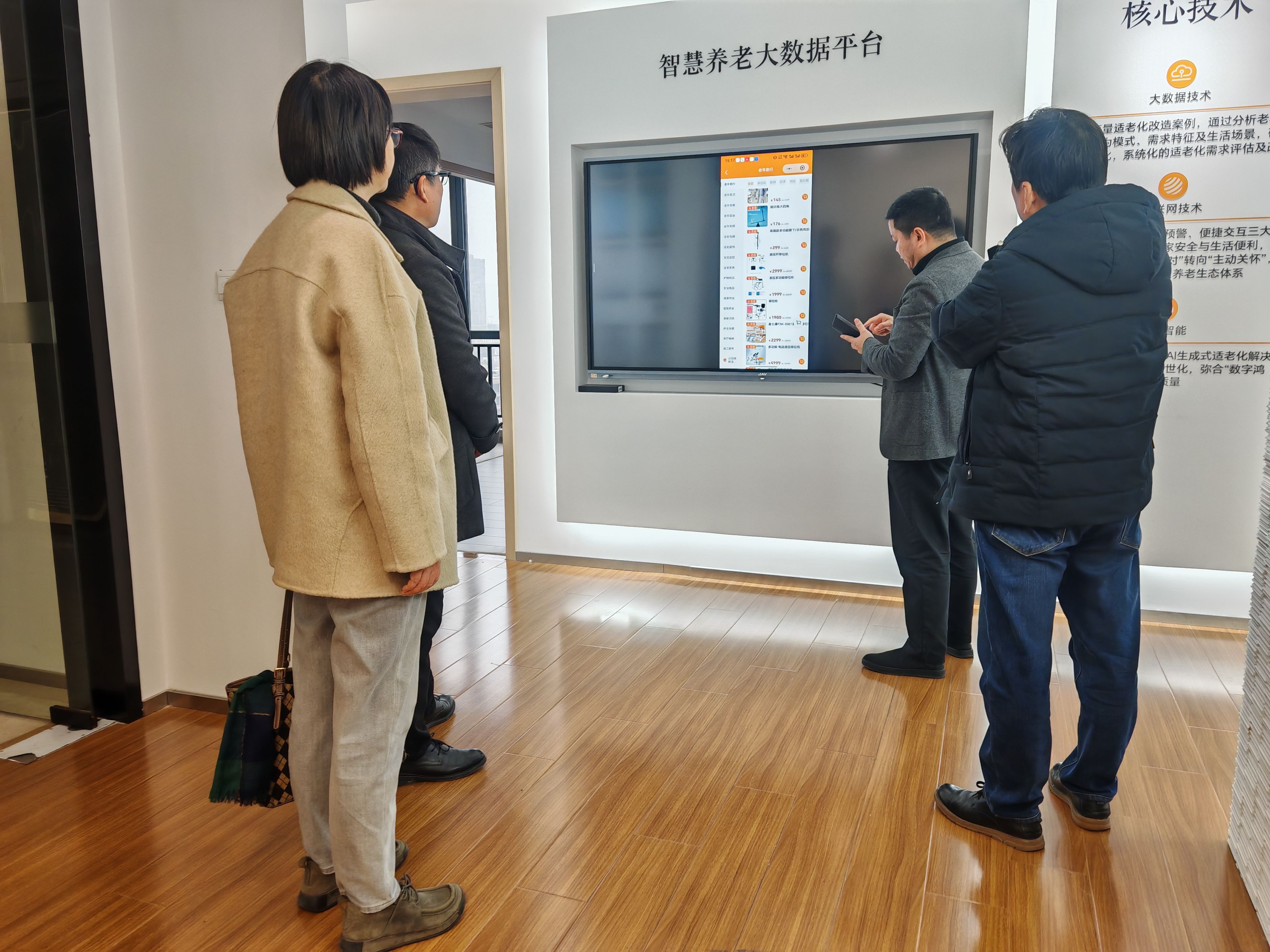 公司创始人张祺先生向我们介绍了公司概况以及核心业务,详细讲述了适老化产品供应链平台如何使用,并带离退休工作处一行到体验中心实地参观安润泽康公司独家研发的场景化、智能化、全链路、全周期的无障碍适老化改造项目。大家从门厅、餐厅、客厅、厨房、卧室、卫生间的处处人性化的细节设计中感受到现代科技产品给居家的老年人生活带来的便利。